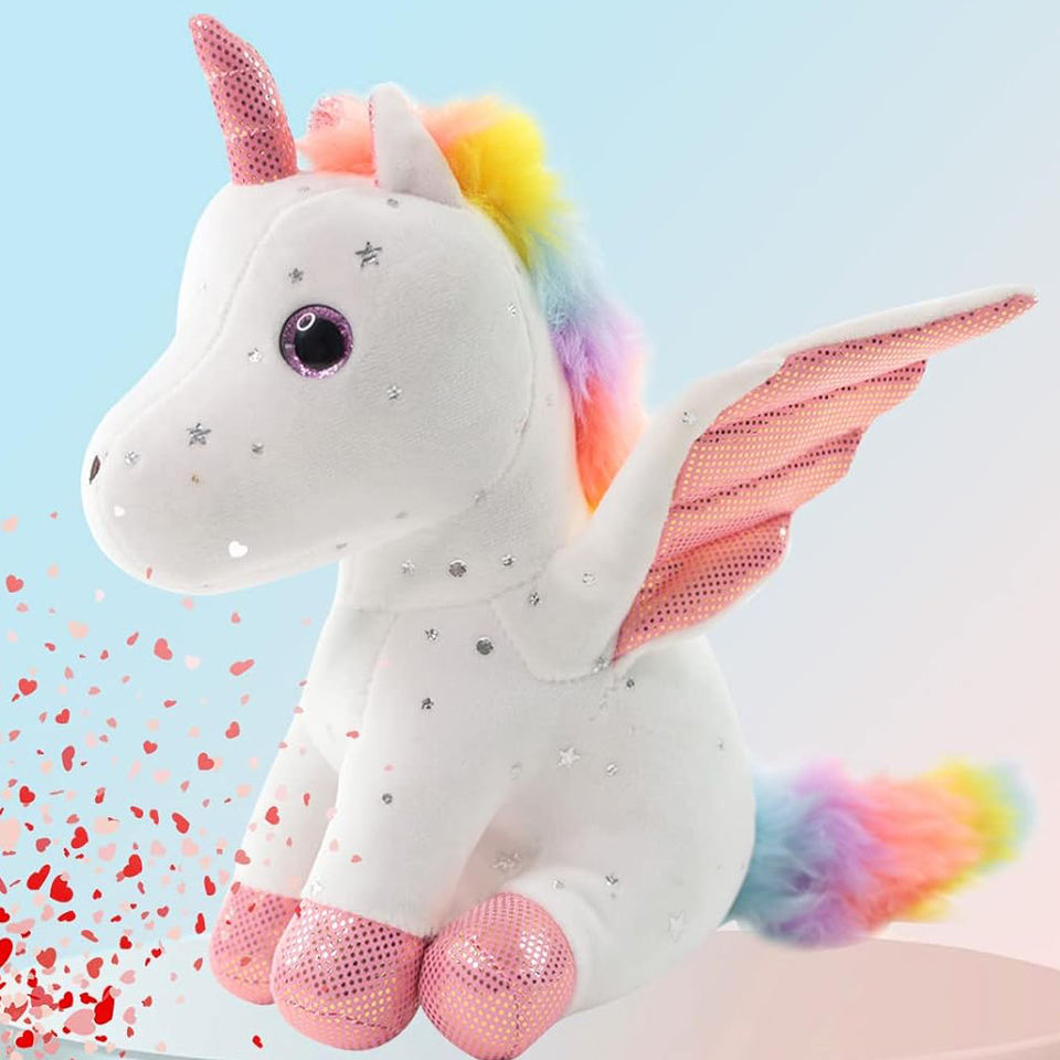 Unicorno peluche simpatico regalo per ragazze 3-8 anni ali morbide unicorno decorazioni per bambini giocattoli di peluche per bambini personaggi dei cartoni animati: imballaggio individuale in una borsa in poliestere, una borsa opp, una scatola da esposizione o per cliente personalizzato