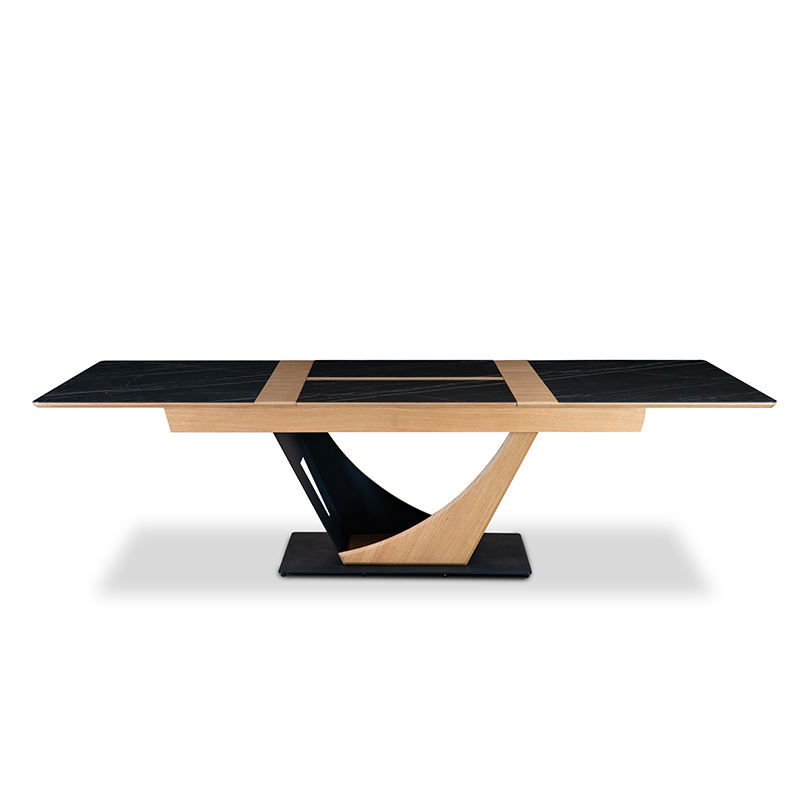 Tavolo da Pranzo Allungabile Rettangolare con Piano in Ceramica e Legno, Design Unico per Arredamento Casa