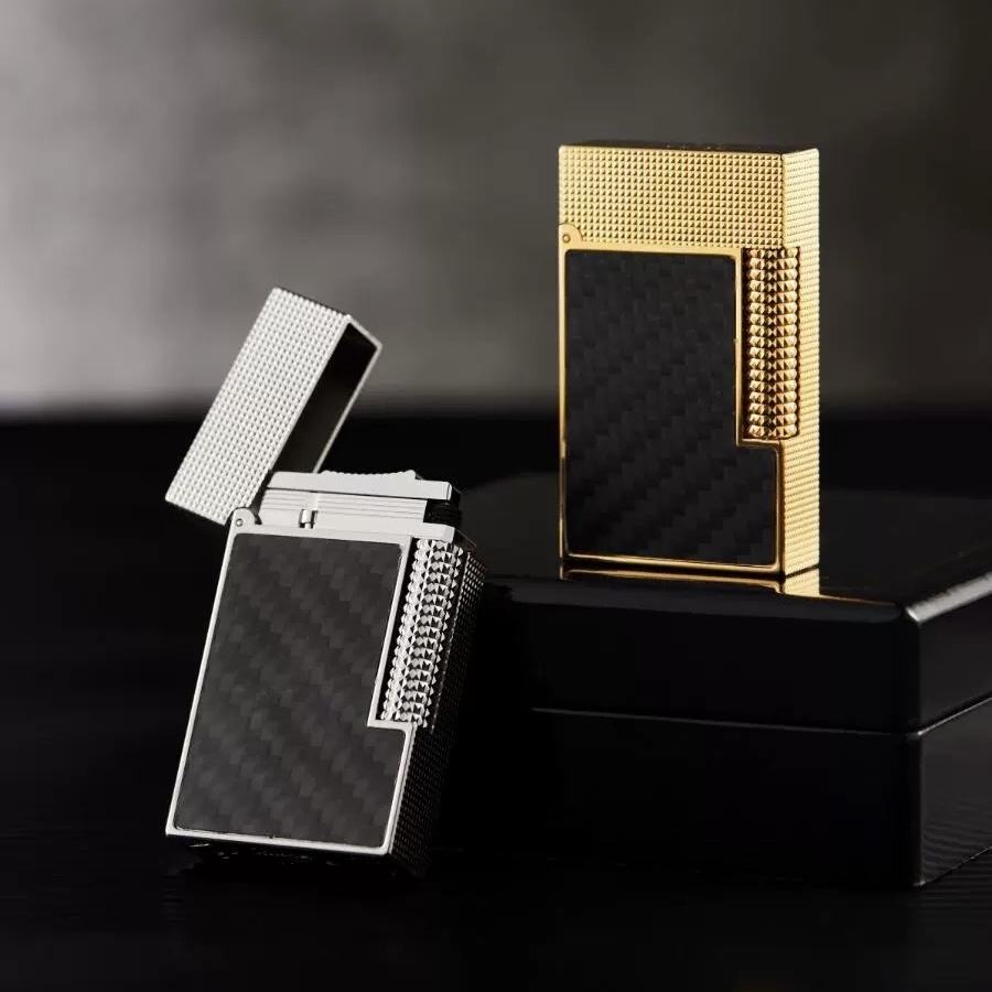 Nome del prodotto:Accendino vocale con inserto in fibra di carbonio a doppia fiamma