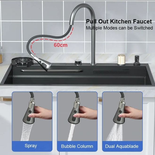 Design unico balena 304 in acciaio inox lavello a cascata lavello cucina a fessura singola lavabo nano verdura lavabo