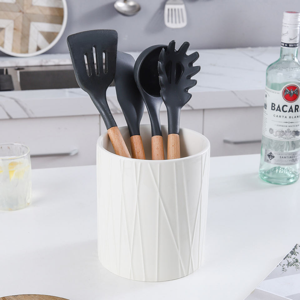 Unique Design White Ceramic Standing Type Pot Utensil Holder for Kitchen Use