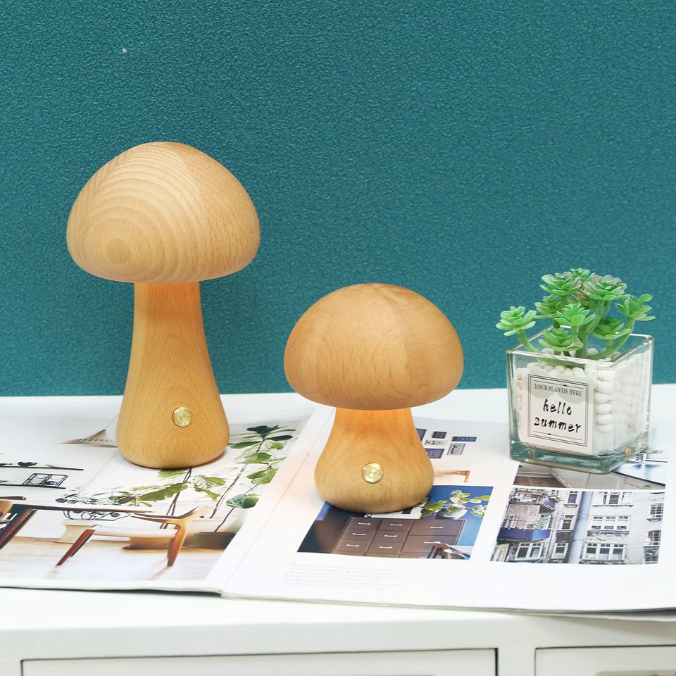 Lampade da tavolo in legno dimmerabili in stile europeo unico a batteria paralumi decorativi a fungo per matrimoni di hotel di ristoranti