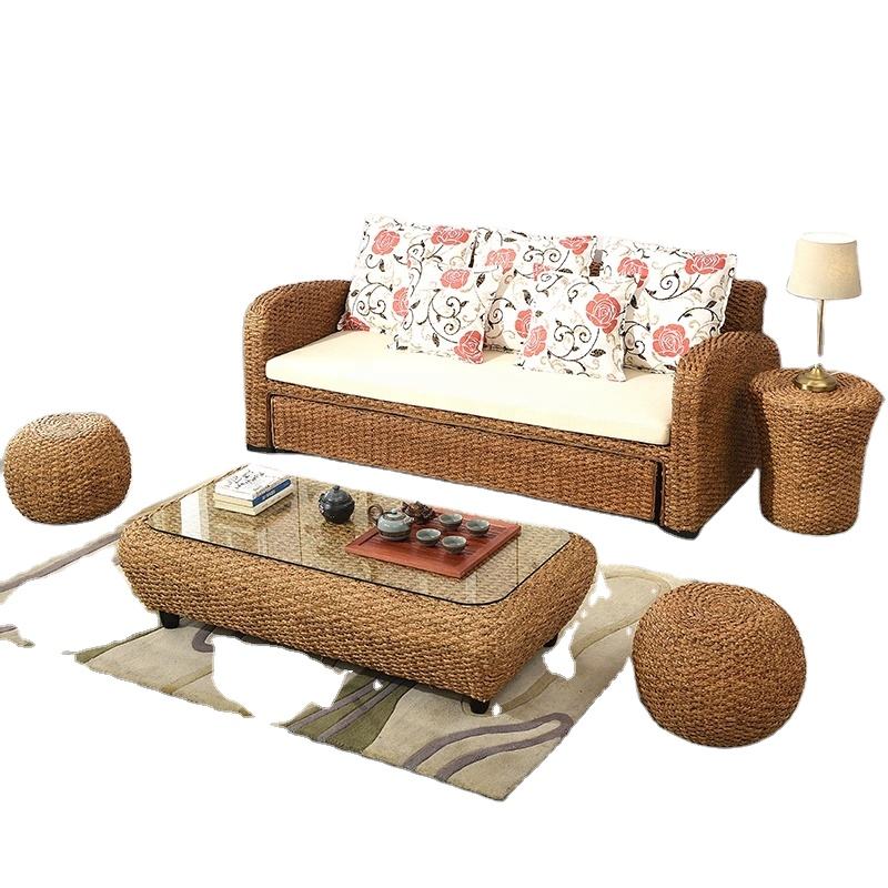 Natural Rattan Seagrass Living Room Furniture Sofa cum Bed