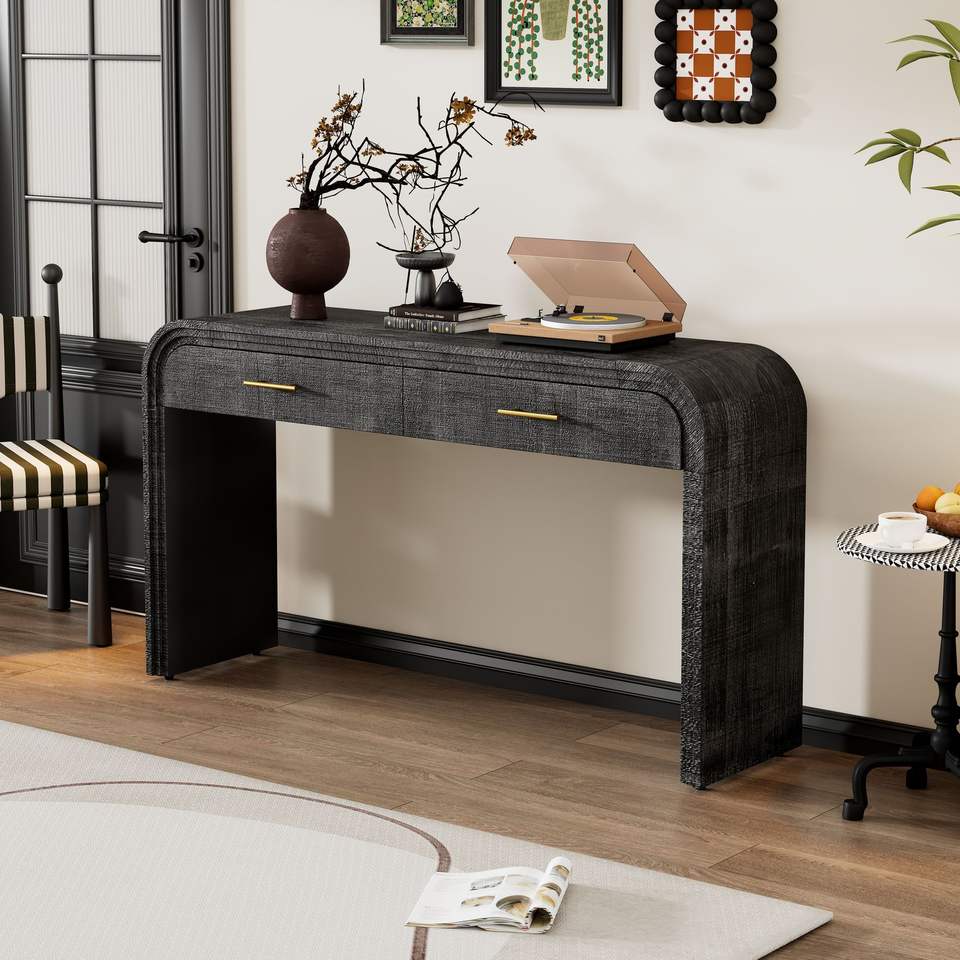 Console unico retrò Silhouette con stile aperto due cassetti Top nero antico per l'ingresso da pranzo o soggiorno