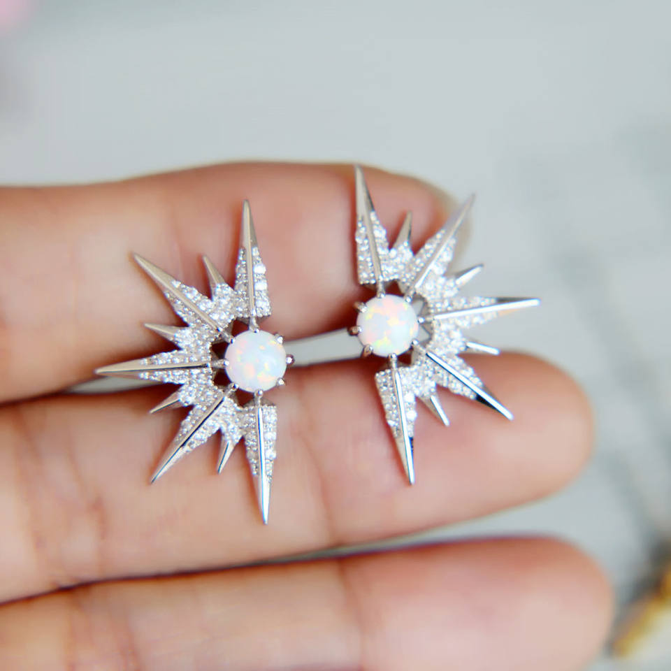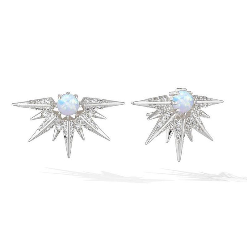 Unique Sparking Women Fashion Jewelry 9 Spike Full 5A Cubic Zirconia Paved 1 Circle Opal Jewelry Stunning Sun Burst Stud Earring