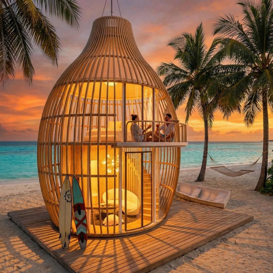 Villa Modulare a 2 Piani in Acciaio, Design Unico per il Sud-Est Asiatico, Impermeabile ed Ecologica, a Forma di Gabbia per Uccelli, per Hotel e Vivere all'Aperto