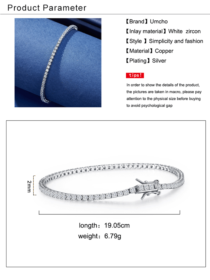 Bracciale Tennis Unisex da 17cm 7 Pollici in Argento con Zirconi CZ da 3mm 3A 5A, Catena alla Moda Personalizzata da Donna