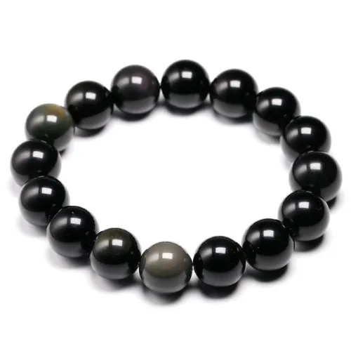 Bracciale Unisex Fatto a Mano in Ossidiana Dorata 6-12mm, Bracciale Elastico con Perle di Onice Nero Naturale, Regalo per Uomo