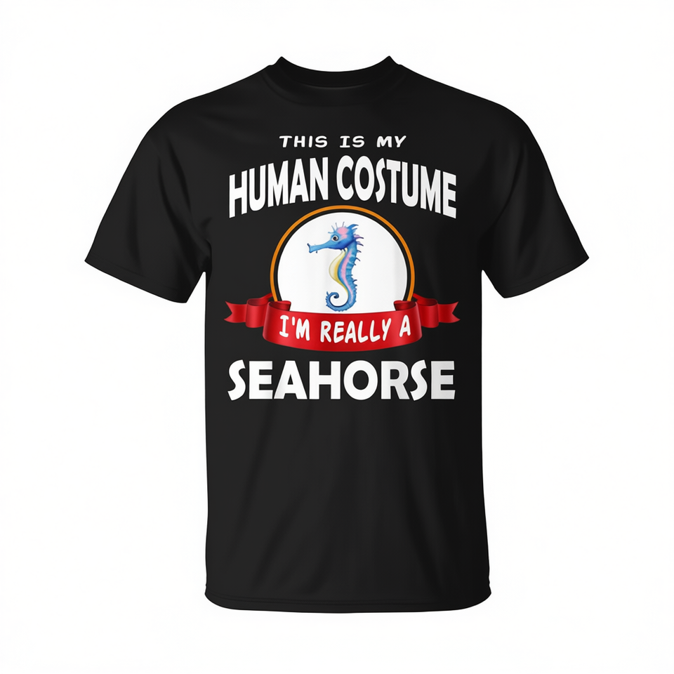 T-Shirt Unisex per Adulti a Maniche Corte con Collo Rotondo, Stampa Digitale con Design a Tema Cavalluccio Marino, Promozionale