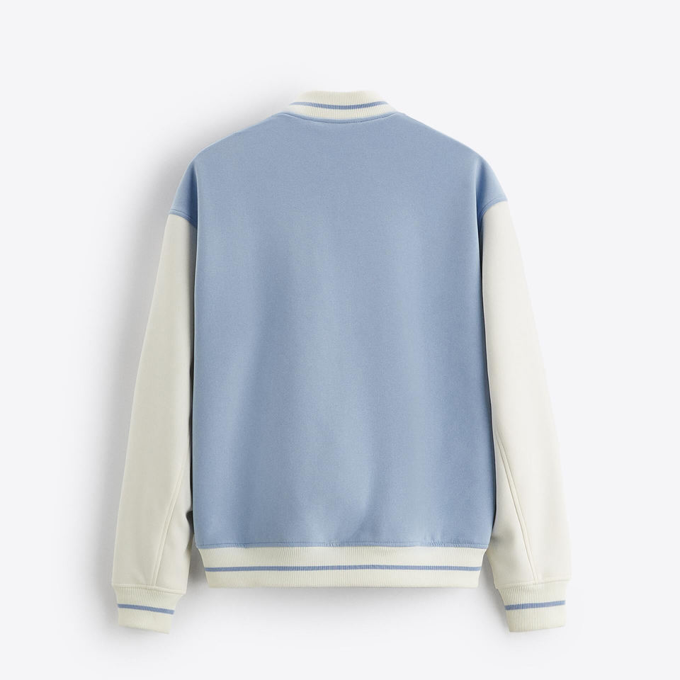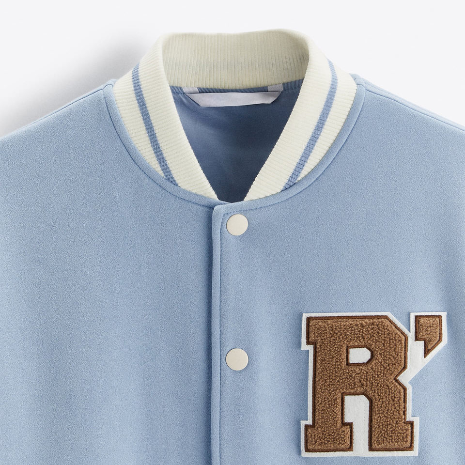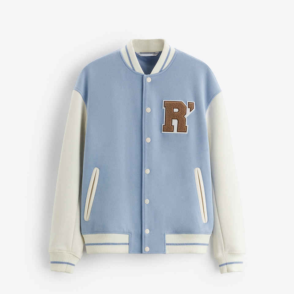Giacca Varsity Unisex Senza Collo Imbottita in Tela, Giacca Spessa di Lusso con Ricami e Patchwork, Stile Formale