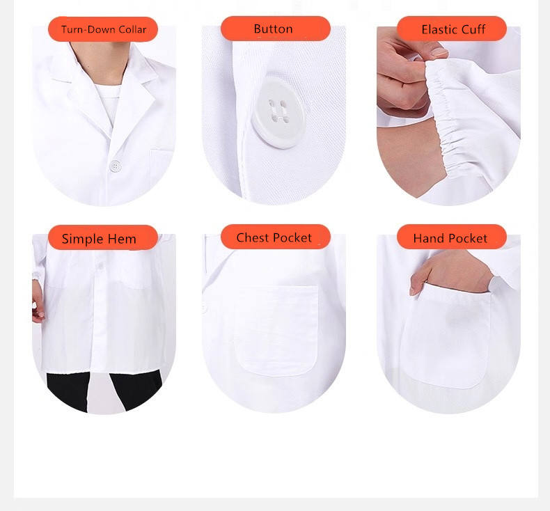 Unisex Personalizzabile Lab Uniformi del Medico Cappotto Infermiera Bianco del Laboratorio Cappotto del Vestito A Maniche Lunghe Junior Fit
