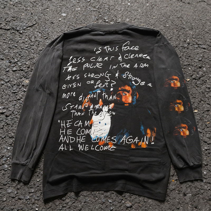 T-Shirt Unisex a Maniche Lunghe in Cotone 100% con Stampa Effetto Consumato, Stile Streetwear Casual Oversize