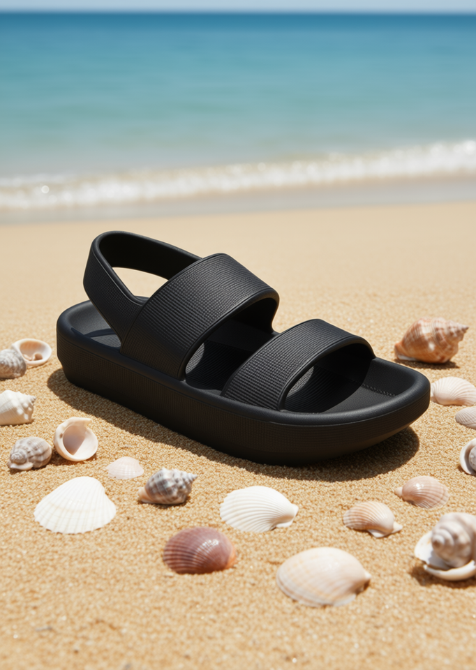 Sandali Unisex in EVA con Doppio Cinturino, Comodi, Estivi, a Punta Aperta, Tinta Unita, Slip-On, Fodera in Tessuto, Suola in EVA
