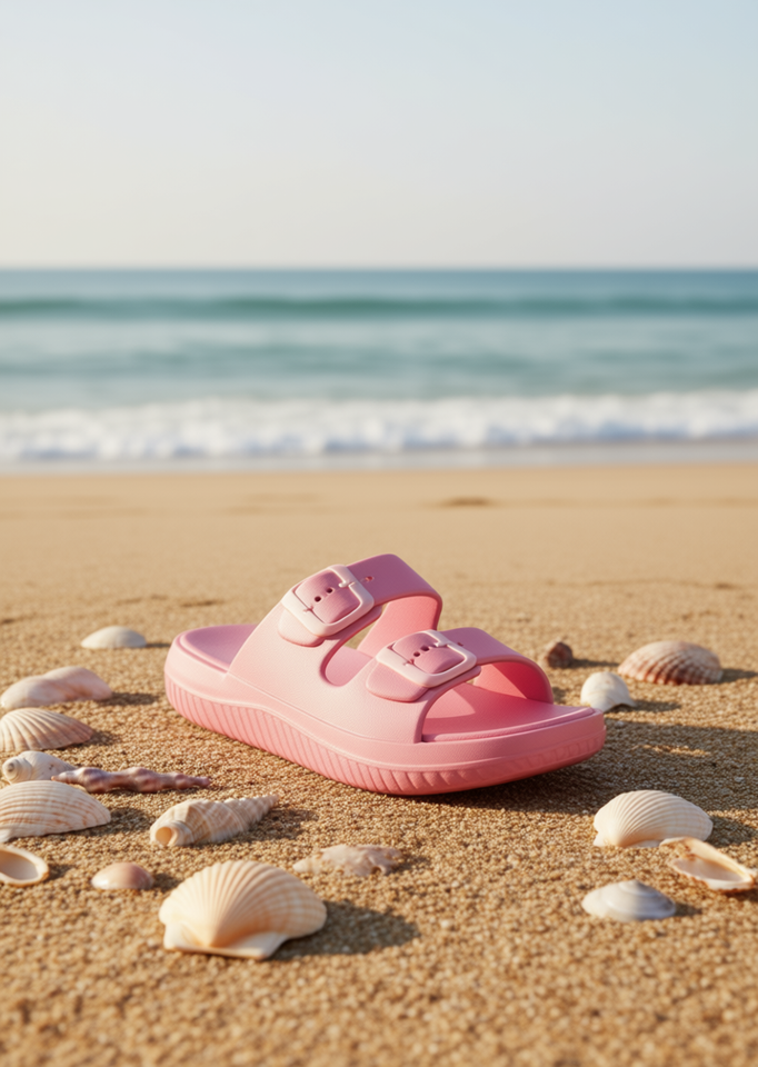 Sandali Unisex in EVA con Doppio Cinturino, Taglia 24, Comodi, Punta Aperta, Estivi, Tinta Unita, Chiusura con Fibbia