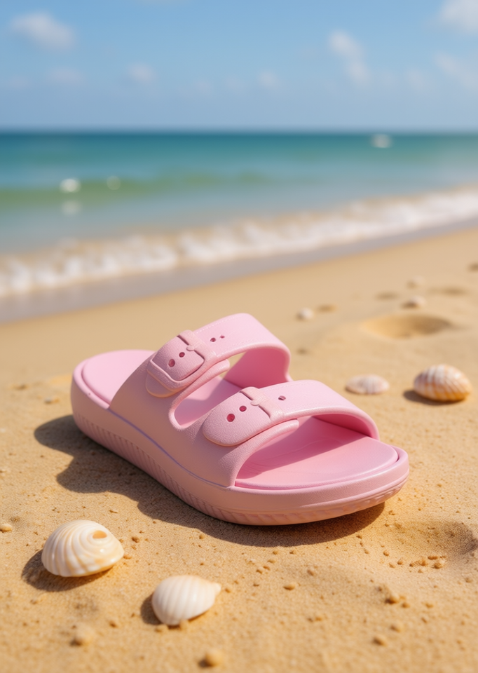Sandali Unisex in EVA con Doppio Cinturino, Misura 27, Comodi, Tacco Piatto, Estivi, Tinta Unita, Punta Aperta, Chiusura con Fibbia