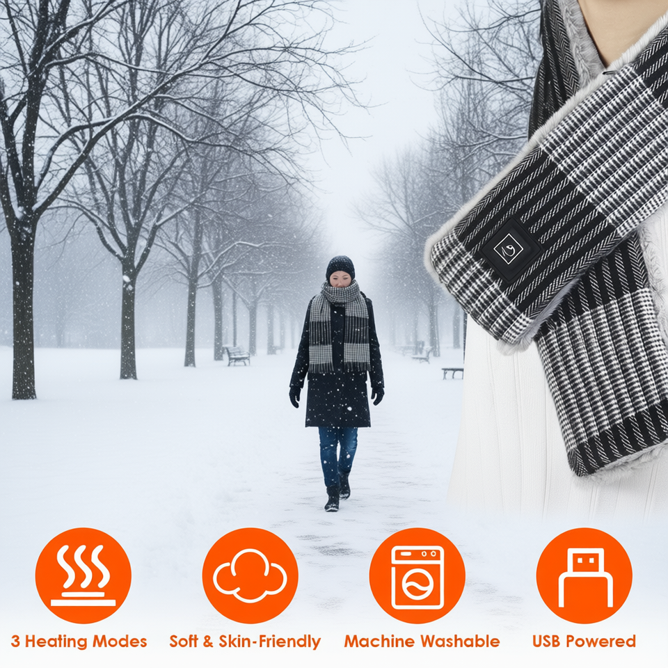 Sciarpa Elettrica Riscaldata D0100XTDVVW Grigia, Scaldacollo Invernale Termico Alimentato USB, 3 Modalità di Riscaldamento, Morbida e Calda per Uomini e Donne