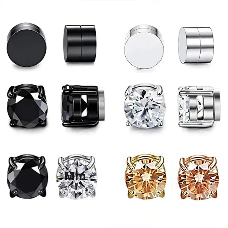 Unisex Fashion Moissanite Earrings Same Style Non-Pierced Magnet Ear Clip with Zircon Fake Earrings