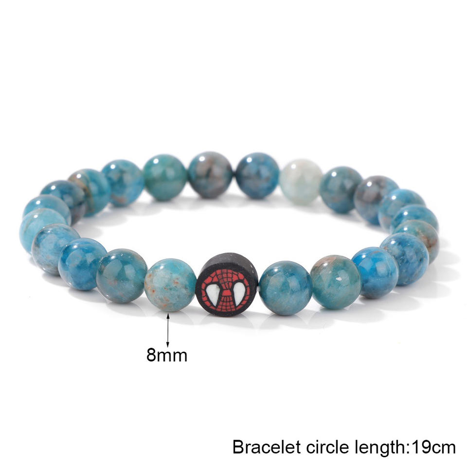 Unisex Fashionable Crystal Healing for Bracelet with Spider Man Charm Pendant Soft Ceramic Natural Stone Beads Ball Shape Gift