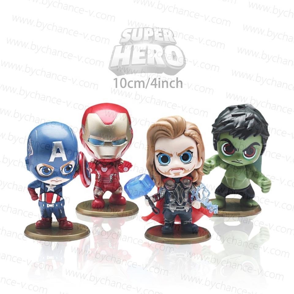 Unisex regalo gratuito per gli amanti dei supereroi ironman Thor capitano americano 100mm piccola figura di cartone animato per il distributore automatico di giocattoli Stuffer