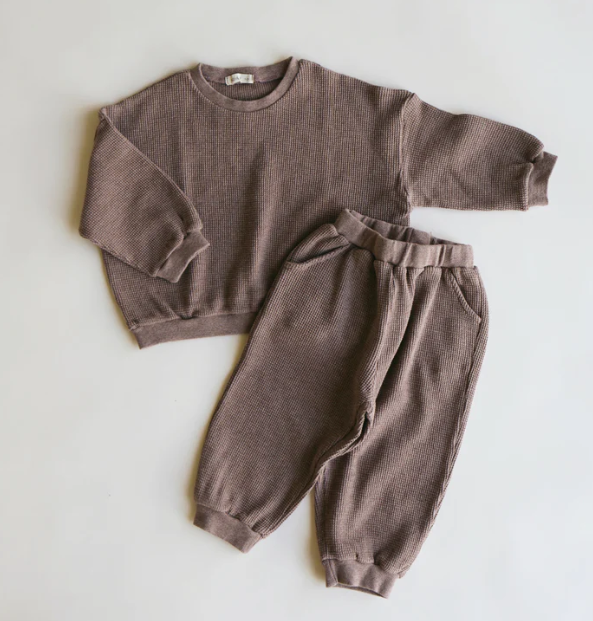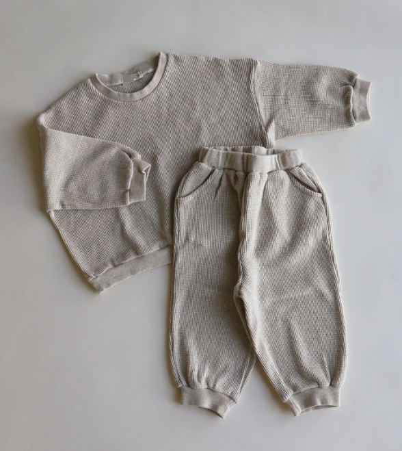 Unisex Kids Jogger Set Casual Solid Pattern Long Sleeve Waffle Sweatshirts and Track Pants for Both Boys and Girls