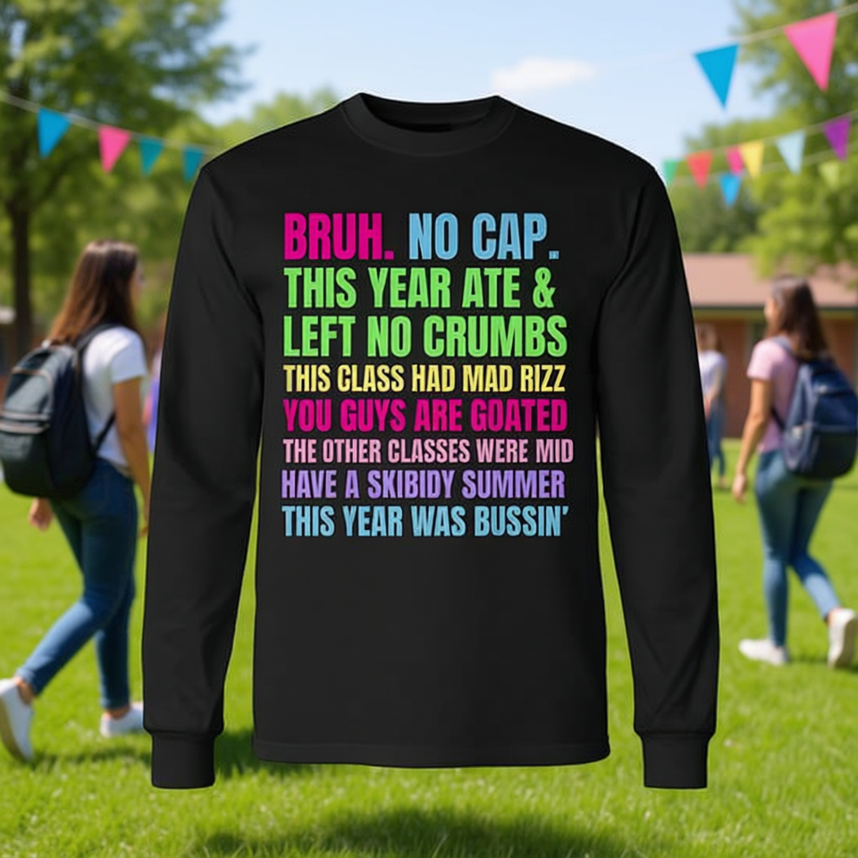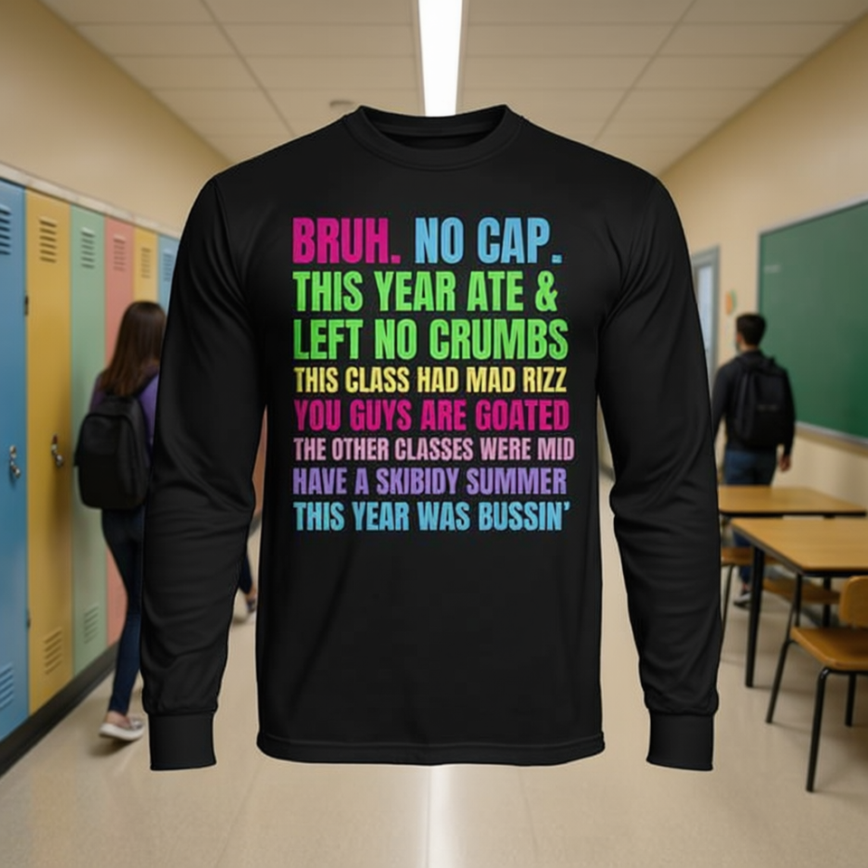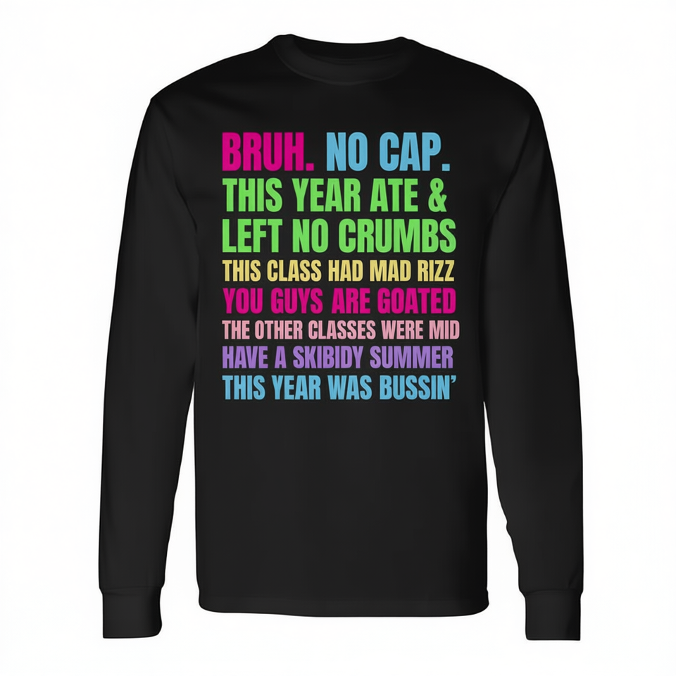 T-shirt unisex a maniche lunghe con girocollo e stampa digitale, magliette per il ritorno a scuola e per la laurea
