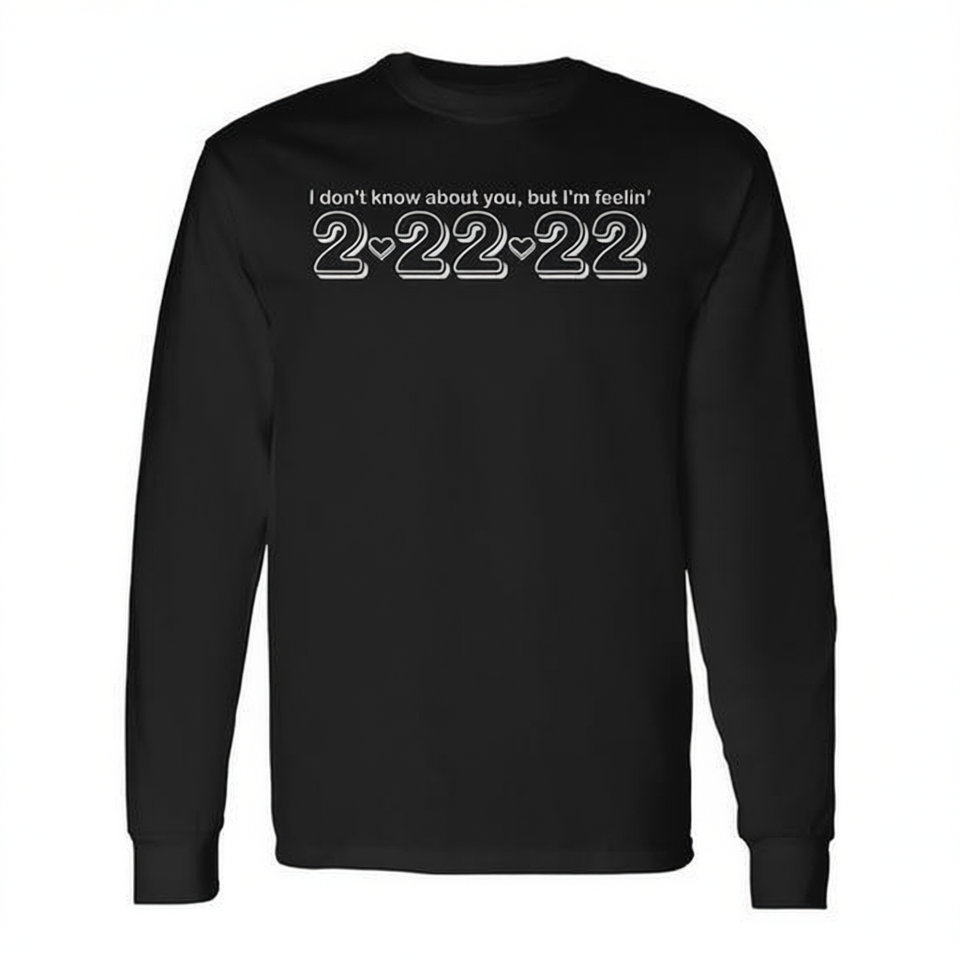 T-shirt unisex a maniche lunghe girocollo stampata con design 2-22-22 Twosday per adulti, abbigliamento promozionale