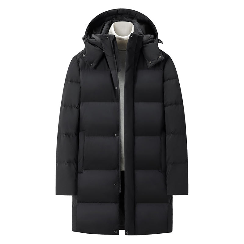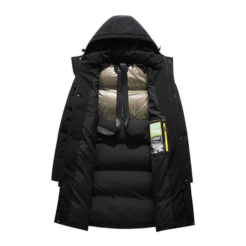 Parka imbottito lungo impermeabile con cappuccio e cerniera, unisex (per uomo) – invernale e caldo