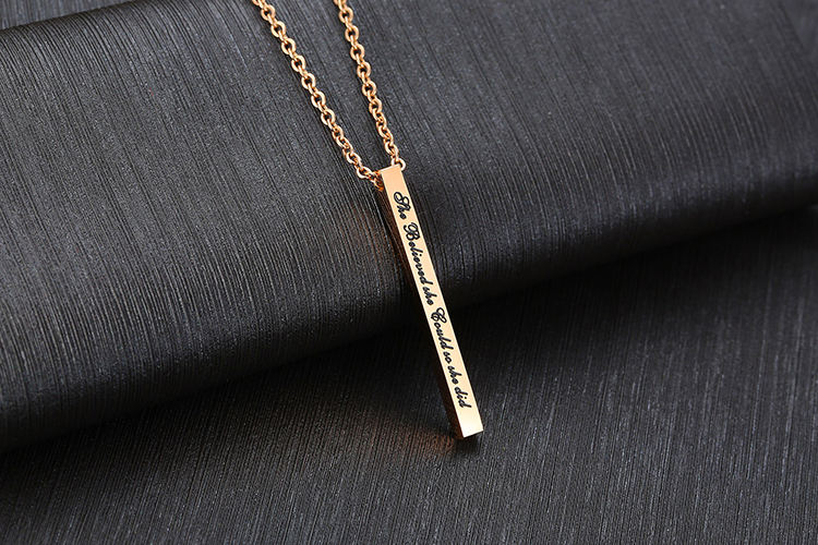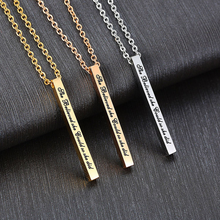 Unisex Minimalist Style Customized Stainless Steel Necklace with Gold Plating Engraved Encouraging Words and Vertical Bar