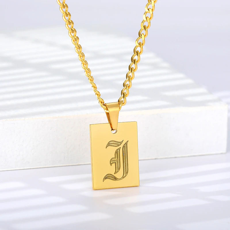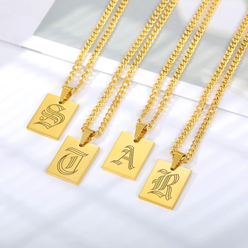 Unisex Personalized Initial Engraved Necklace Cuban Link Chain Gothic Fashion Letter Women Rings Custom Jewelry Name