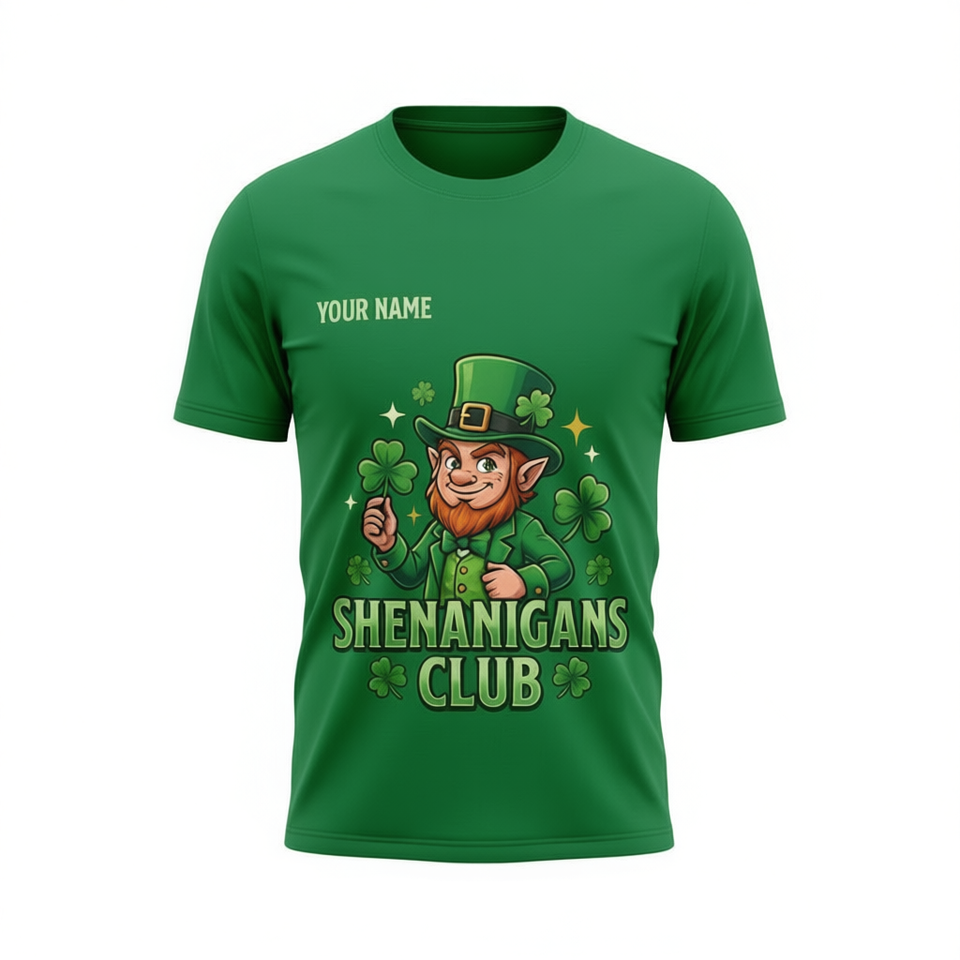T-Shirt Unisex Personalizzata per San Patrizio, Club dei Scherzi, Grafica Leprechaun, Divertente Quadrifoglio Irlandese Verde, Personalizzabile Promozionale