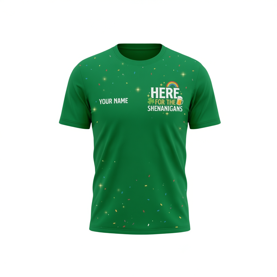 T-Shirt Unisex Personalizzata per San Patrizio, Club dei Scherzi, Grafica Leprechaun, Divertente Quadrifoglio Irlandese Verde, Personalizzabile Promozionale