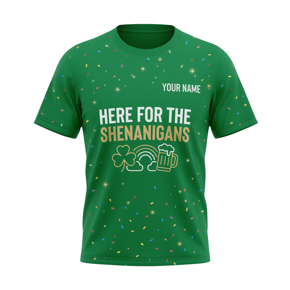 T-Shirt Unisex Personalizzata per San Patrizio, Club dei Scherzi, Grafica Leprechaun, Divertente Quadrifoglio Irlandese Verde, Personalizzabile Promozionale