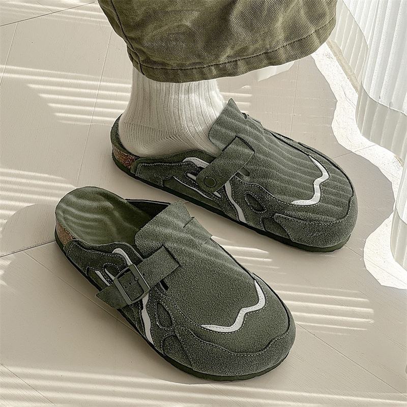 Ciabatte da spiaggia in sughero con punta chiusa in camoscio Unisex da uomo in vera pelle antiscivolo Custom Mules TPR Gel gomma fabbrica di PU