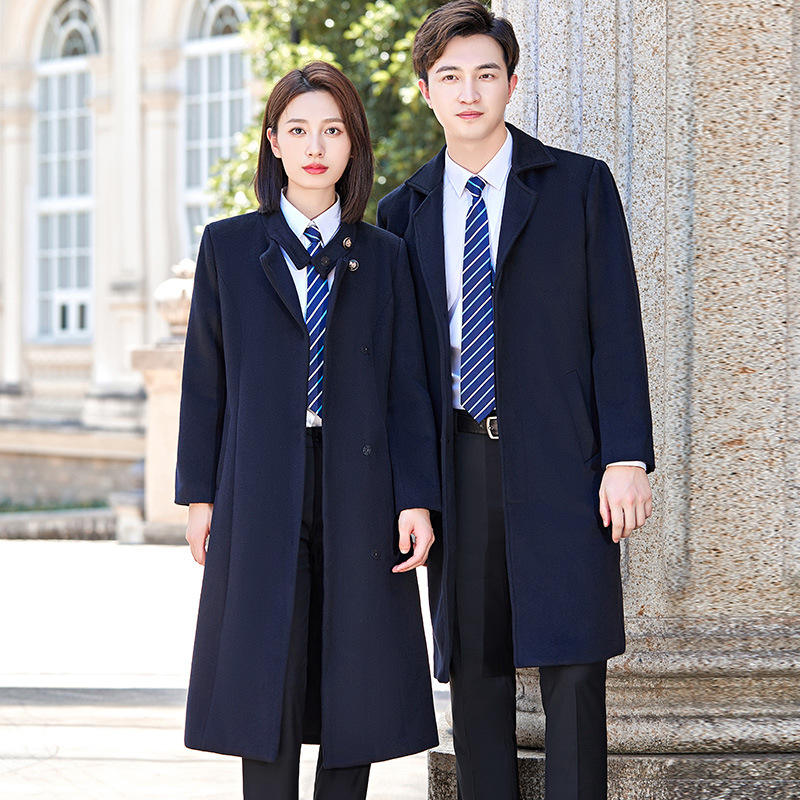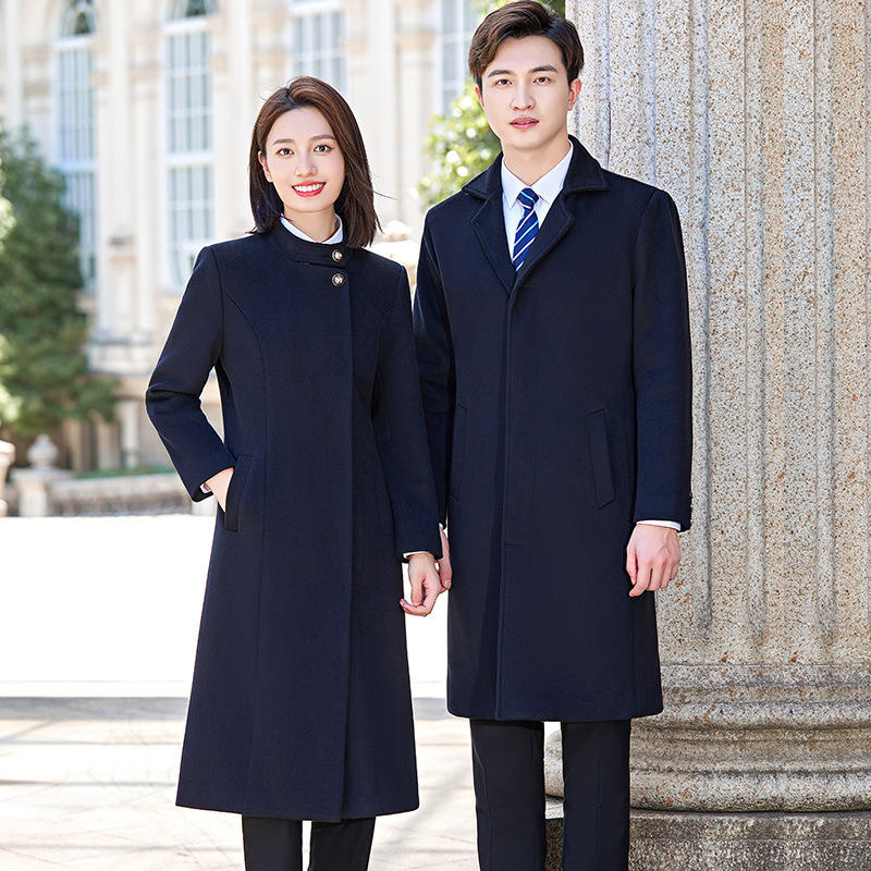 Unisex Thick Long Length Lapel Collar Business Formal Trench Coat Single Button Winter Desk Reception Beauty Salon Jewelry Store