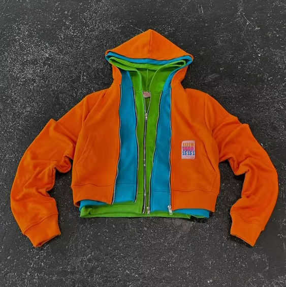 Felpa Unisex in cotone oversize pesante arancione felpa con cappuccio con cappuccio Streetwear a triplo strato di alta qualità