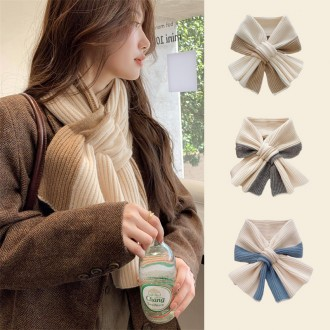 Unisex Two-Tone Design Winter Knitted Muffler Soft Neck Warmer and Daily Scarf with Cold Protection KK715