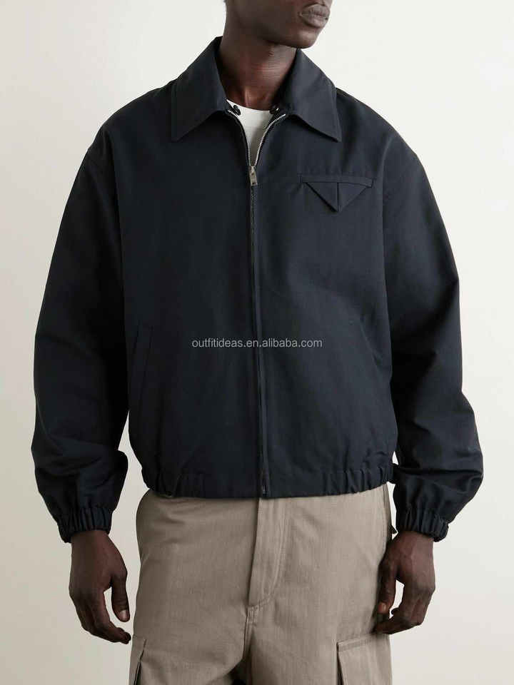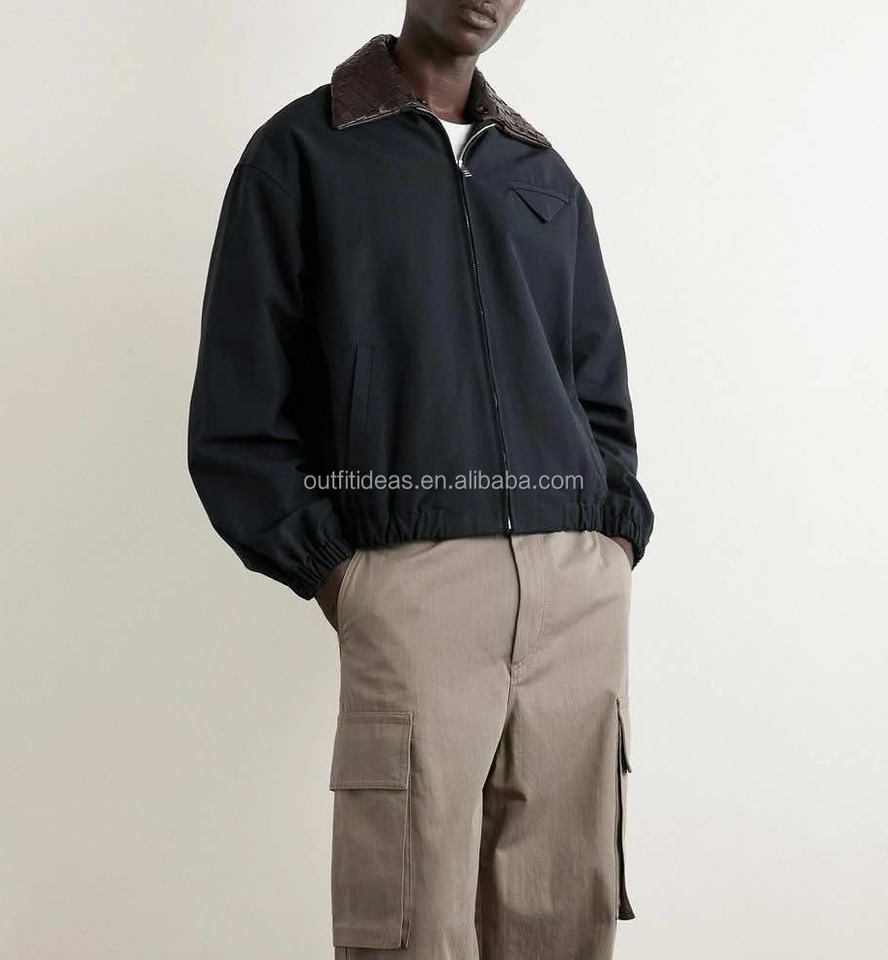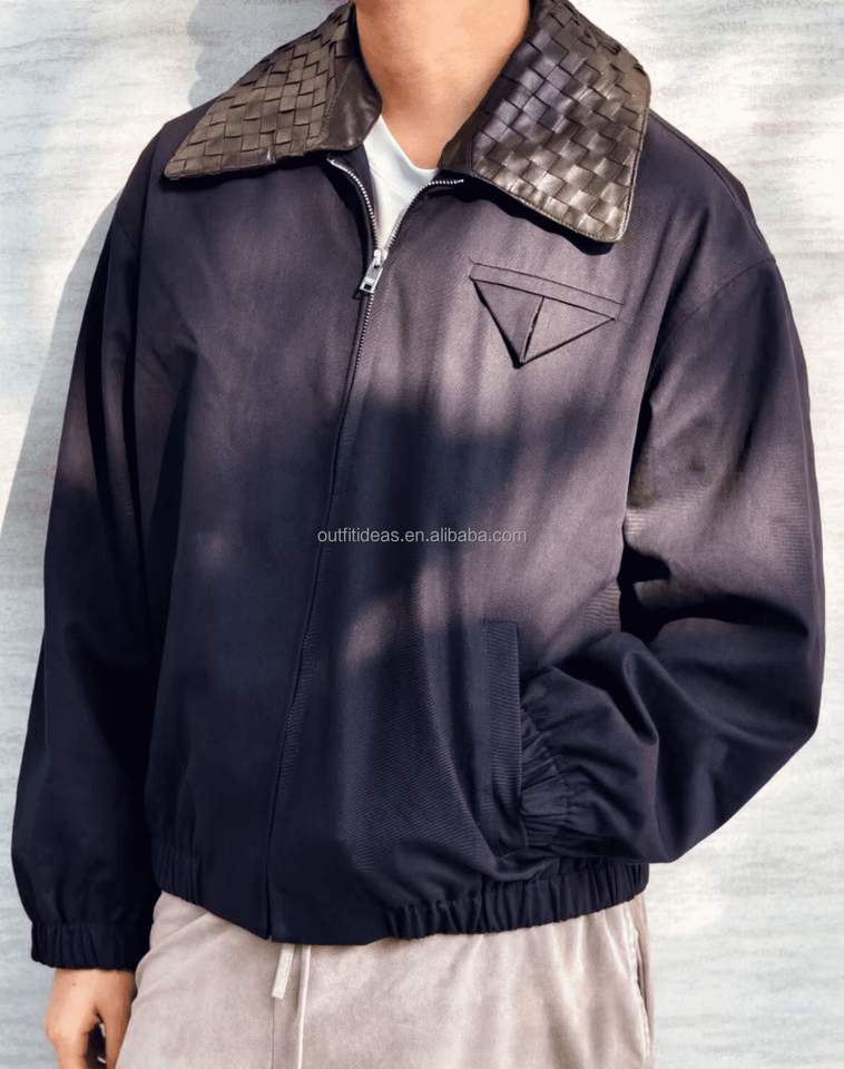 Unisex Women Men Cotton-blend Canvas Blouson Leather Work Vintage Flight Jacket Detachable Intrecciato Leather Collar Jacket