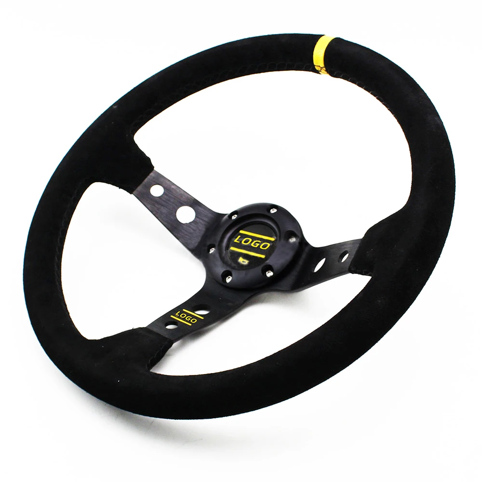 Volante Universale in Pelle Scamosciata da 14'' (350MM) per Corse e Drift con Clacson