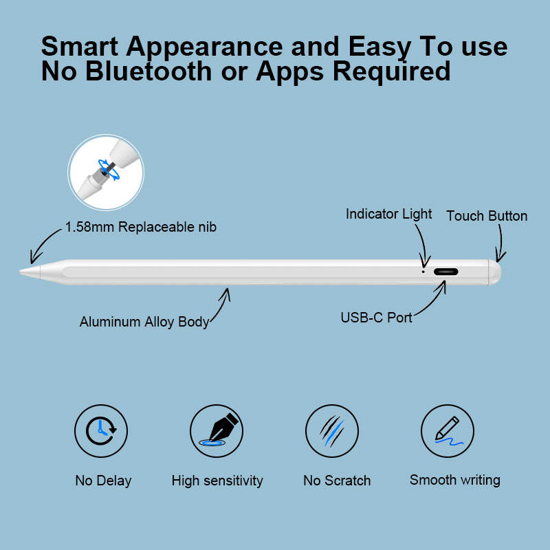 Attrazione magnetica, Tecnologia di rilevamento attivo, Pennino sostituibile, Rilevamento dell'angolo di inclinazione