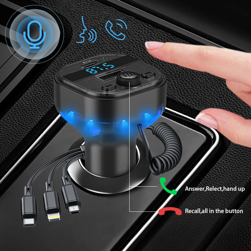 Caricabatteria da auto, Trasmettitore di FM, Ricarica veloce, Assistente vocale, Microfono incorporato, Stereo Stereo