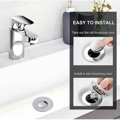 Universal Pop-Up Drain Filter Stainless Steel and Silicone Bathroom Sink Plug Stopper Waste for Bathtub and Wash Basin