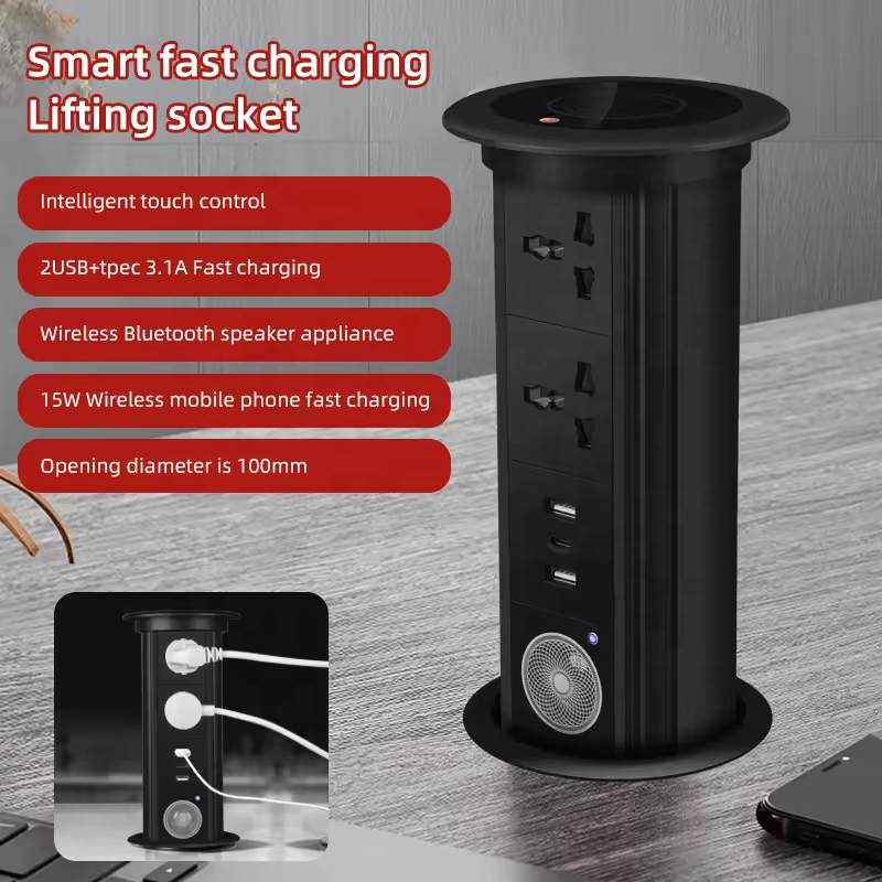 Prese a scomparsa motorizzate intelligenti universali per la ricarica Wireless superiore torre di sollevamento da cucina presa di corrente Pop-Up