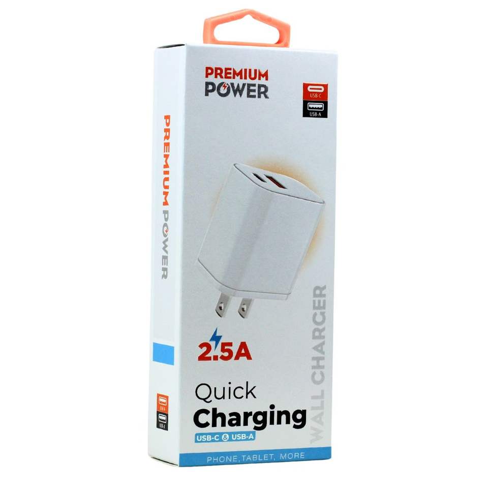 Adattatore caricabatterie universale da parete 2.5A USB-C con ricarica rapida PD, uscita 5V/2.5A e protezione da cortocircuito per tutti i telefoni