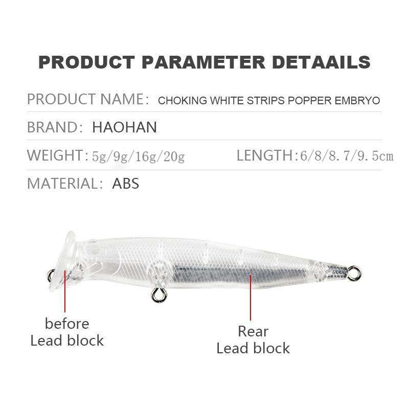 Esca da pesca a Popper ABS 5g/9g/16g non verniciata esca dura 10.91g Crankbait per salmone senza spigola 8376 per il fiume