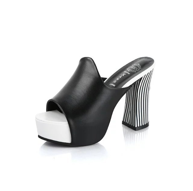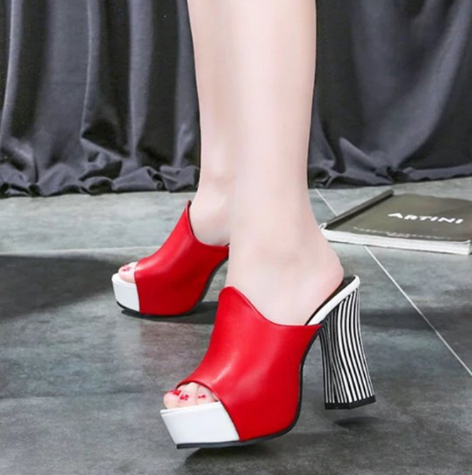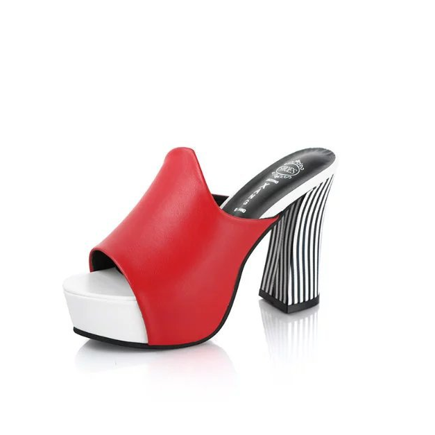 Up-0096C 2022 New Women Comfortable Sandals Elegant Summer Fish Mouth Sandals Chunky Heels Slippers for Ladies
