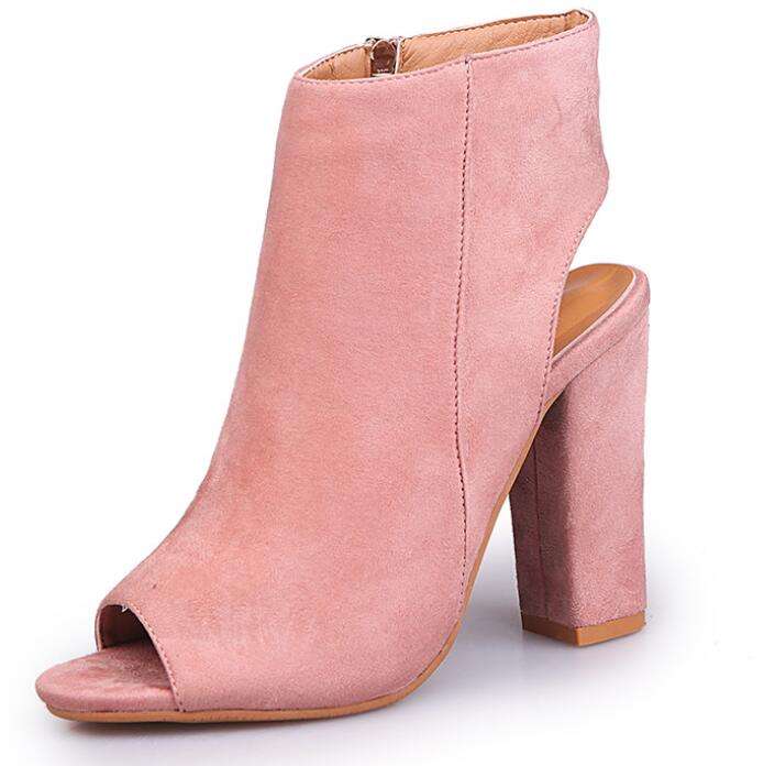 Scarpe da Donna Up-0151r in Pelle PU con Tacco Alto e Grosso, Nuovo Modello di Stivali con Punta Aperta per Ragazze, Taglia 43