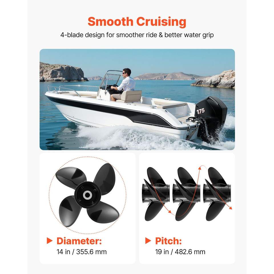 Elica Marina in Alluminio a 15 Denti per Motori Fuoribordo Mercury/Mariner 135-300 HP 4-3/4 - Versione Migliorata