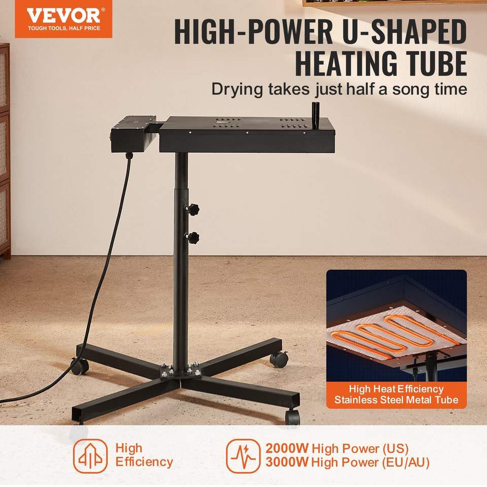Essiccatore Flash Elettrico da 2000W con Scatola di Controllo, 18x18 Pollici, per Serigrafia Professionale, Regolabile in Altezza