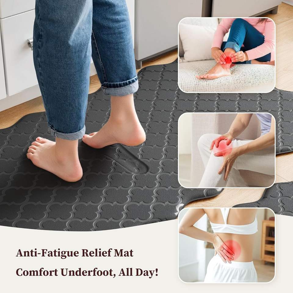 Set di 2 Tappetini Anti-Fatica per Cucina, con Bordo Ondulato, Impermeabili, in Schiuma Antiscivolo, Lavabili