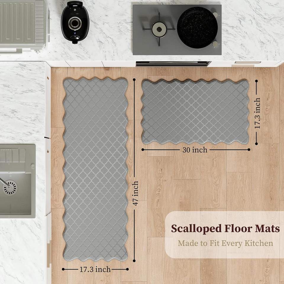 Set di 2 Tappetini Anti-Fatica per Cucina, con Bordo Ondulato, Impermeabili, in Schiuma Antiscivolo, Lavabili, Compatibili con 'Co'